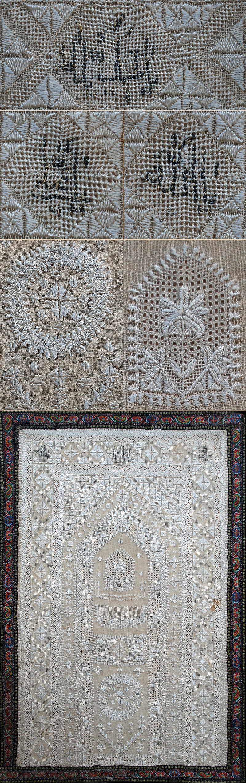 Antique Persian Textile. Isfahan Sokmenh- Duzi with Islamic Calligraphy Silk with Silver Thread made as Prayer Panel