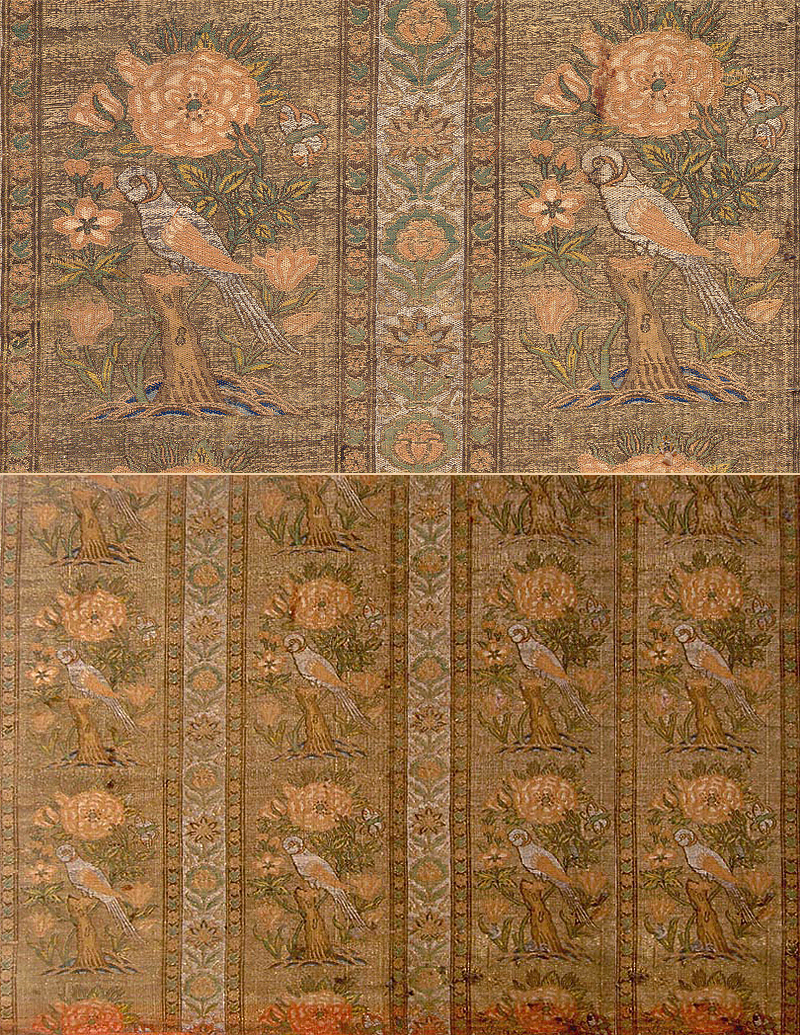 Antique Persian Textile. Silk Brocade with Silver thread Safavi Dynasty 1501-1722 A.D Circa 1600