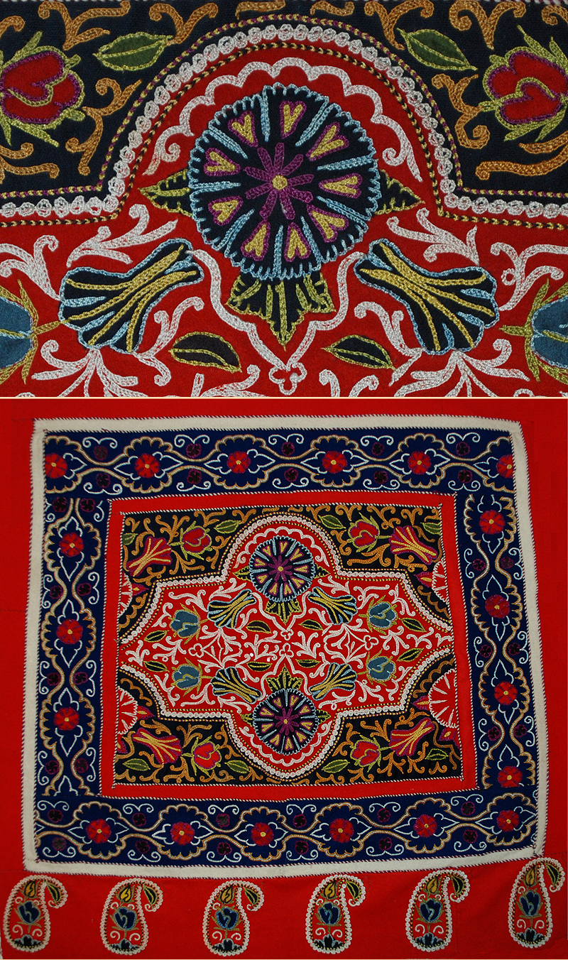 Antique Persian Textile. Silk Rashti- Duzi Embroidery on Felt Qajar Dynasty 1795 -1925 A.D Circa 1890