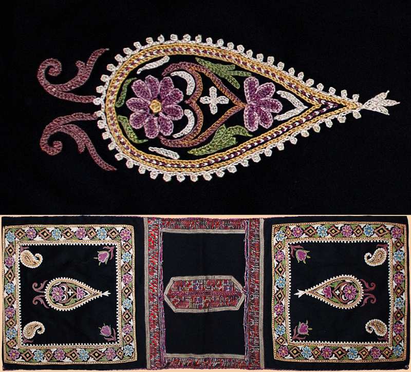 Antique Persian Cargo Bag Silk Embroidery on Flet
