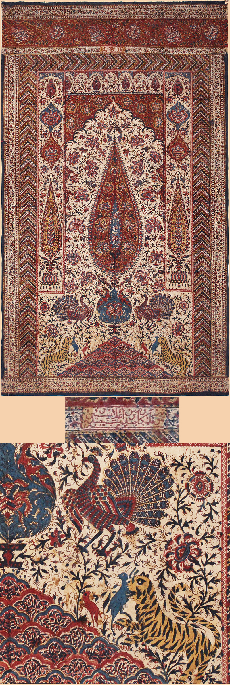 Antique Persian Isfahan Qalamkar Blocked Print & Painting in the Center with Persian Calligraphy at top Qajar Dynasty 1795 -1925 A.D Circa 1850