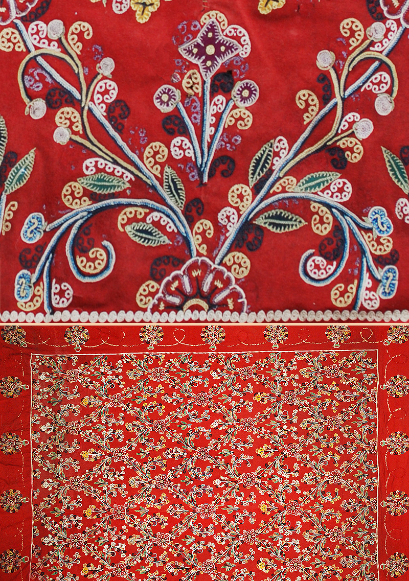 Antique Persian Textile. Very Fine Silk Embroidery Silk on Felt Rasthi, Duzi