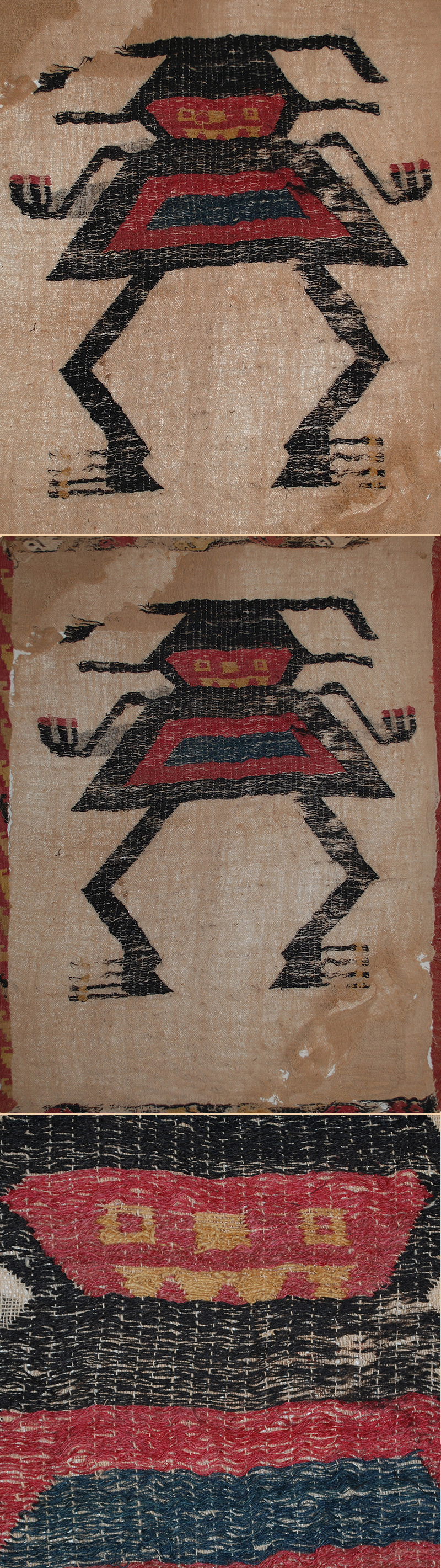 Antique Pre-Columbian Textile, Central Coast 500 - 800 A.D Plain weave, slit tapestry with human figures.