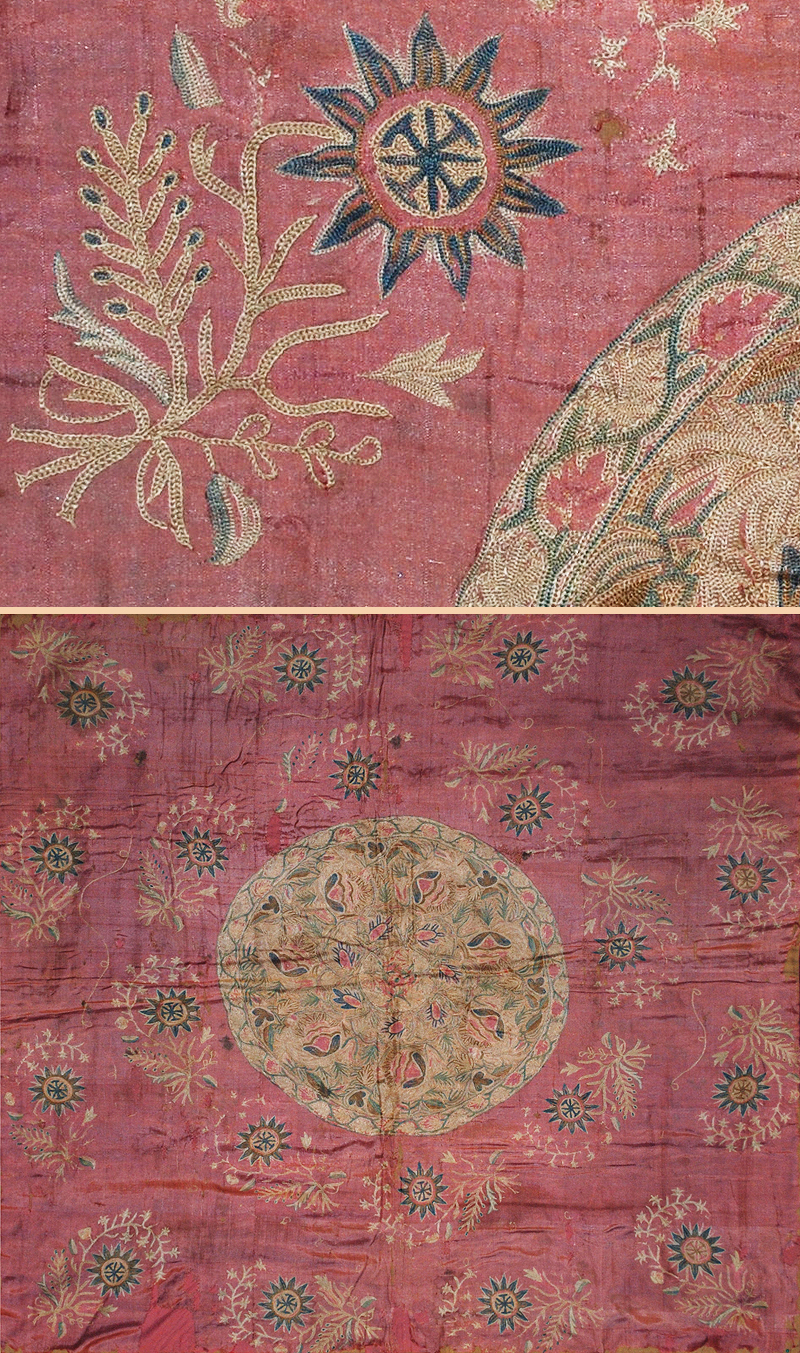 Antique Turkish Textiles, Silk Embroidery Table Cover Ottoman Dynasty 1453-1922A.D Size 40" x 38" Size 102 x 97cm