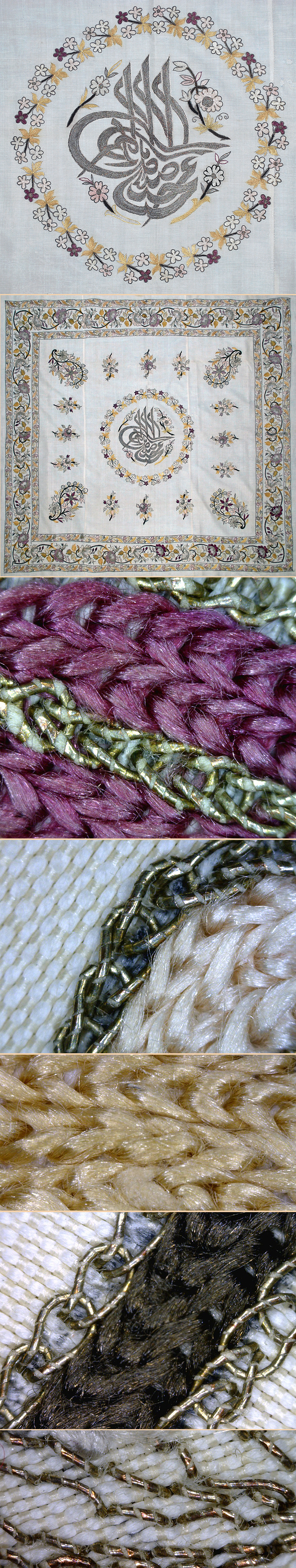 Antique Turkish Textile Embroidery with Silver & silk Islamic Calligraphic Ottoman Dynasty 1453-1922A.D Size 48" x 48" Size 122 x 122cm