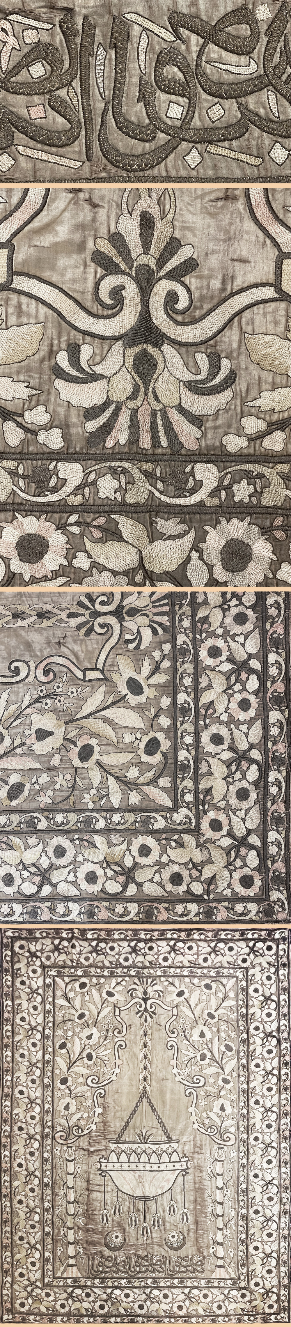 Antique Turkish Islamic Textile, Embroidery with gold thread on Silk. Mosque Design Ottoman Dynasty