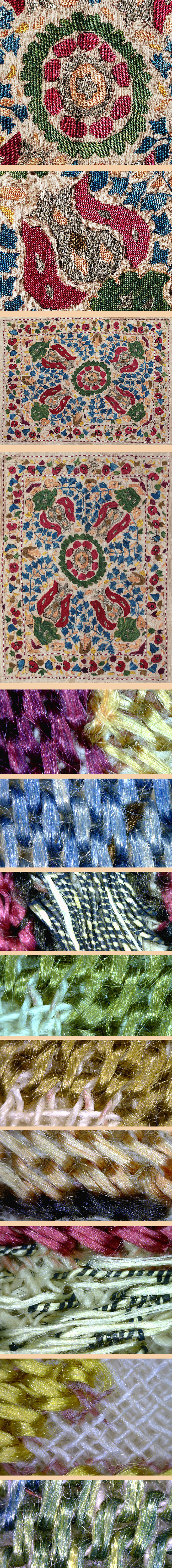 Antique Ottoman Cushion Covers Embroidery. Silk Embroidery with silver thread on Linen.